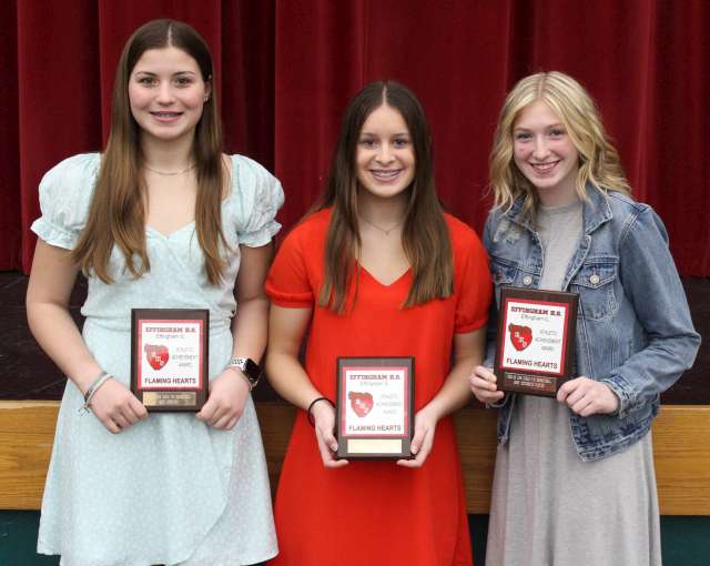 Winning junior varsity awards at Effingham High School were, left to right, Bria Beals, Sidney Donaldson and Saige Althoff.