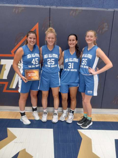 The girls 1A-2A South basketball players included Kaylee Niebrugge of Teutopolis, Lucy Fearday of St. Anthony, Gracie Heckert of Cowden-Herrick/Beecher City, and Sydney Richards of Neoga. Kaylee Niebrugge was named MVP for their squad.