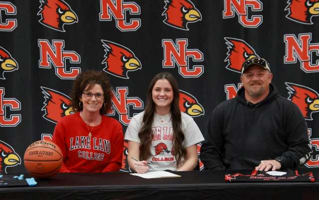 Miah signed with Lake Land Community College in the North Clay High School gym in Louisville.