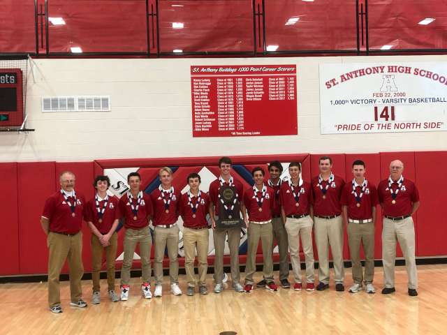 St. Anthony squad members are seniors Alex Erickson, Luke Ludwig, Nathan Schultz, Ben Strullmyer and Zach Wortman; juniors Luke Flaig, Darin Hutchison, Jayden Rios and Ryan Schultz; and freshman Thomas Chojnicki.