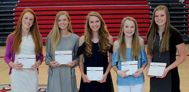 Effingham St Anthony High School girls golf awards went to, left to right, Morgan Schuette (Most Improved), Ava Wegman (Low Average) and Ellie Wegman (Freshman Low Average).