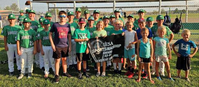 Sacred Heart School was awarded the Division Sportsmanship Award from the Illinois Elementary School Association. Good sportsmanship is one of the primary purposes of junior high athletic programs and the Division Sportsmanship Award was created to recognize outstanding behavior of a member school in each of the IESA's divisions. Pictured is the junior high baseball team with some of the fans after their first home game this season.