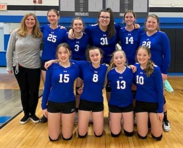 St. Anthony claimed its own seventh-grade sectional Wednesday. Member of the Bullpups are, front row, left to right, Mary Louise Hoene, Veronica Sudkamp, RayAnna Nuxoll, Annabelle Weishaar, Cora Hartmann and Katie Thoele. Back row, left to right, Coach Sara Bernhard, Coach Kristie Bailey, Mia Kinkelaar, Liv Hoene, Gracie Slifer, Callie Emmerich, Vivyona Vaultonburg and Jada Carpenter.