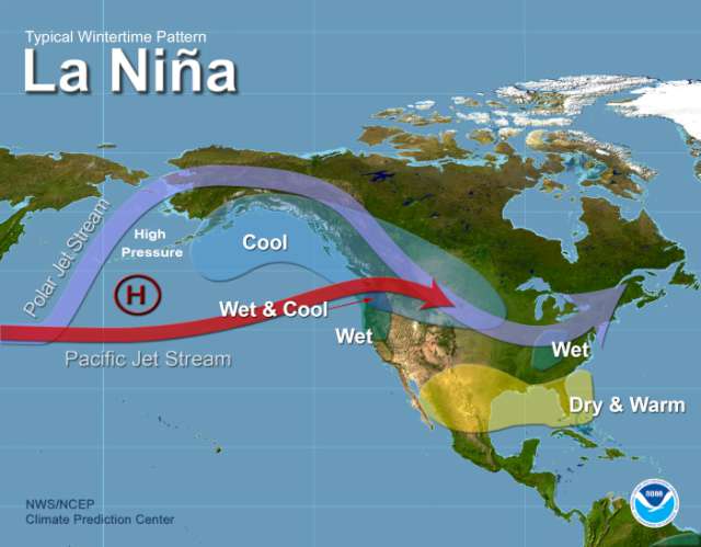 A typical La Nina pattern features the jet stream positioned over the Great Lakes more frequently, thus leading to more storm activity, Angel noted.