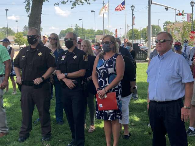 A good-sized crowd braved the heat and humidity over the noon hour Monday to show support to the family of the late Layton Davis, an Illinois State Trooper who was shot and killed in the line of duty in March of 1976. The rally took place to protest the possible release of Davis' murderers.