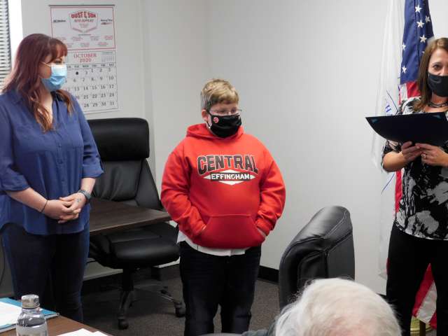 A Central Grade School 5th grader was recognized Tuesday by the Effingham County 911 Board for using 911 to help his ailing mom.