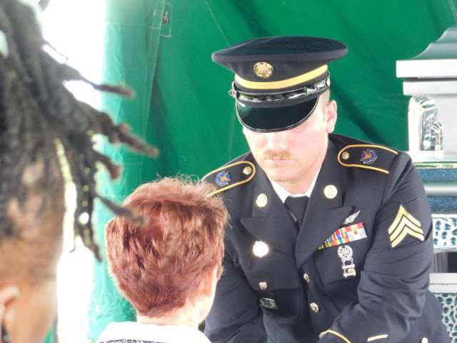 Also present were representatives from Doric Products in Marshall and Rex Vault in Newton who, along with Barkley Funeral Chapel, donated their services and a stainless steel Athenian Burial Vault. The lid is emblazoned with the American flag and the US Army emblem.