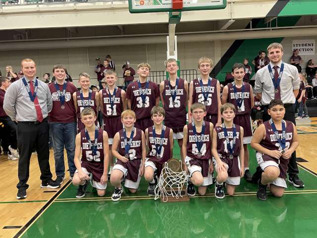 For Dieterich, Bryce Bohnhoff led the way with 15 points. Also for the Roadrunners: Mason Niemerg 9, Alex Schottman 3, and Riley Koester 2. Other players on the Dieterich squad included Ben Schottman, Collin Nichols, Cooper Stortzum, Malachi Cook, Blake Westendorf, Sylus Niland, Traden Kessler and Logan Gipson.