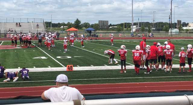 Effingham Junior Football League seventh-graders taking on Mount Zion at the Junior Football League Jamboree Saturday.