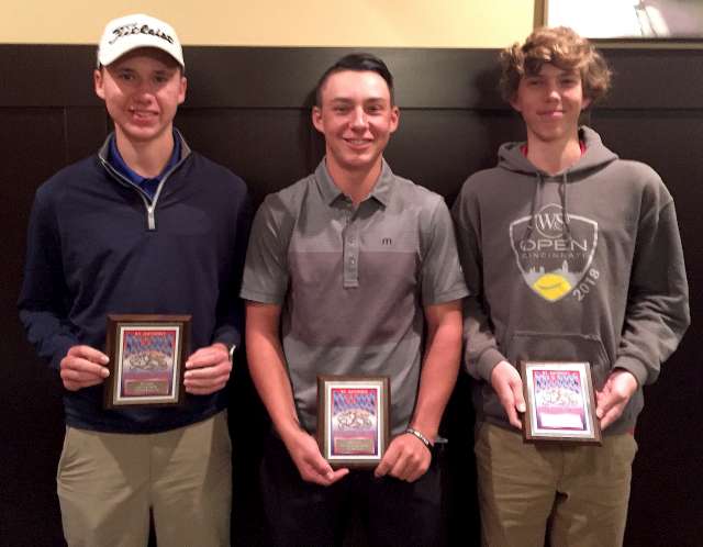 St. Anthony boys golf award winners were, left to right, Thomas Chojnicki - Scoring Leader, Jayden Rios - Low Handicap and Aidan Tegeler - Most Improved.