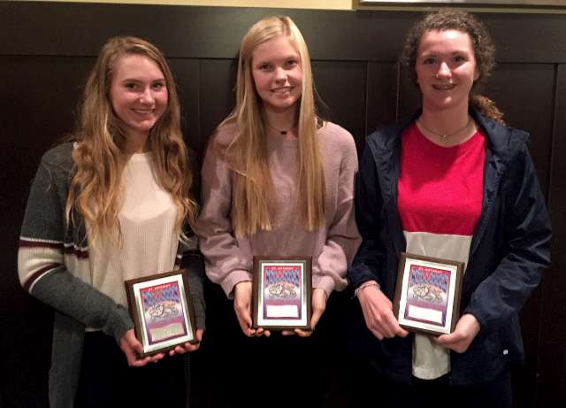 St. Anthony girls golf award winners were, left to right, Reagan Westendorf - Most Improved, Macy Ludwig - Low Scoring Average and Lauren Schwing - Low Freshman Scoring Average.