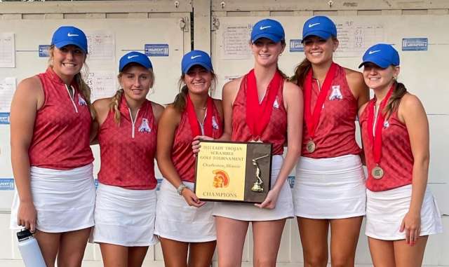 St. Anthony won the Charleston 9-Hole Scramble. Team members are, left to right, Sydney Kibler, Allison Geen, Nina Hakman, Lauren Schwing, Ellie Wegman and Addie Krouse.
